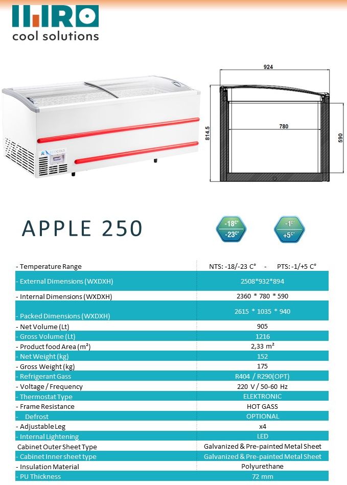 | REFRIGERANT | Std: R290, Opt: R404 |