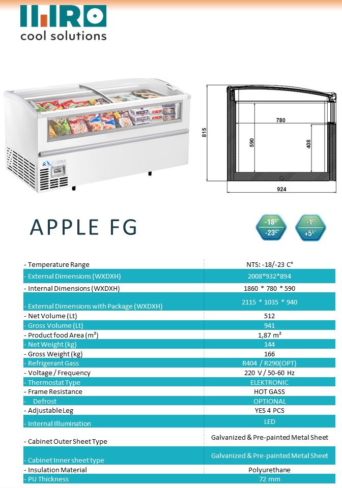 | REFRIGERANT | Std: R290, Opt: R404 |