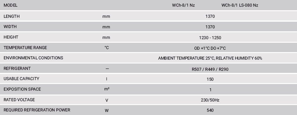 - Cooling system: dynamic- Integral condensing unit (plug in)