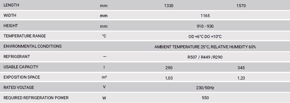 - Cooling system: dynamic- Integral condensing unit (plug in)