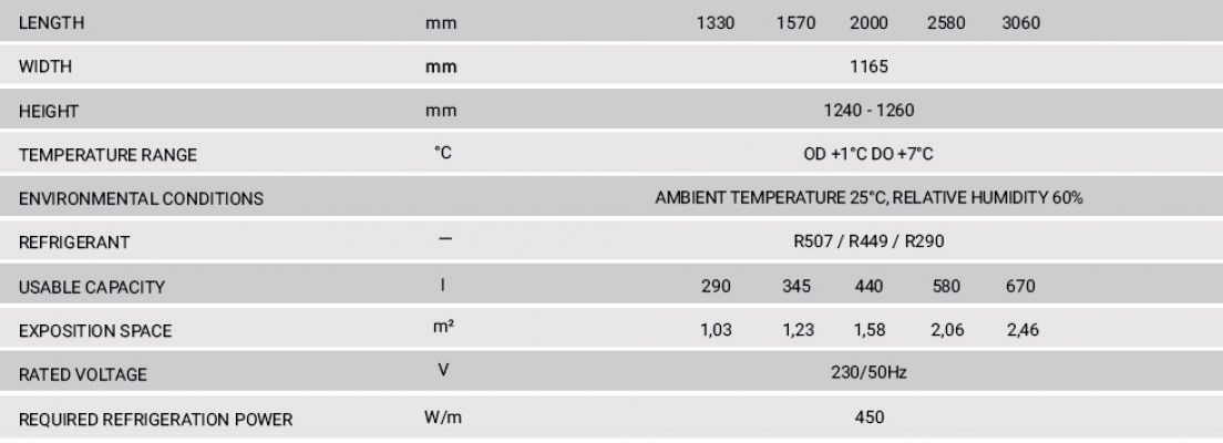 - Cooling system: dynamic- Integral condensing unit (plug in)
