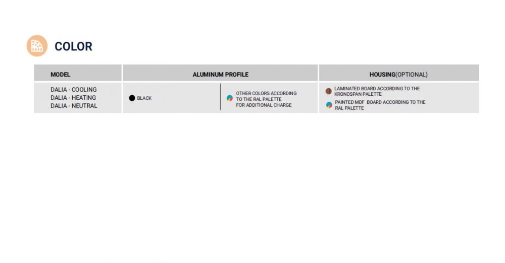 - Outer casing: laminated board from palette KRONOSPAN- Any colour of metal elements fro RALL palette