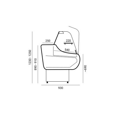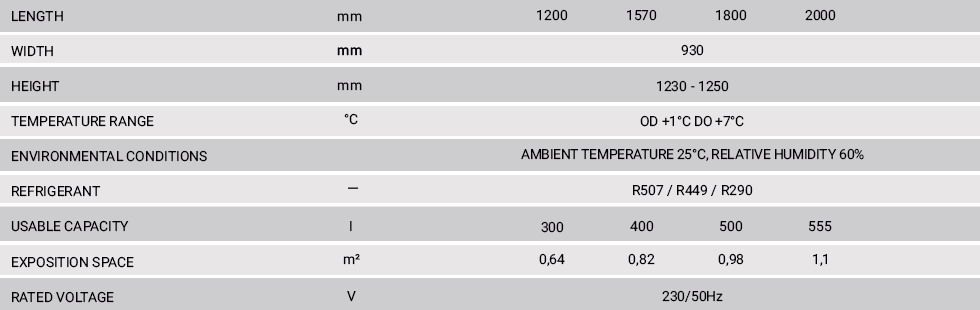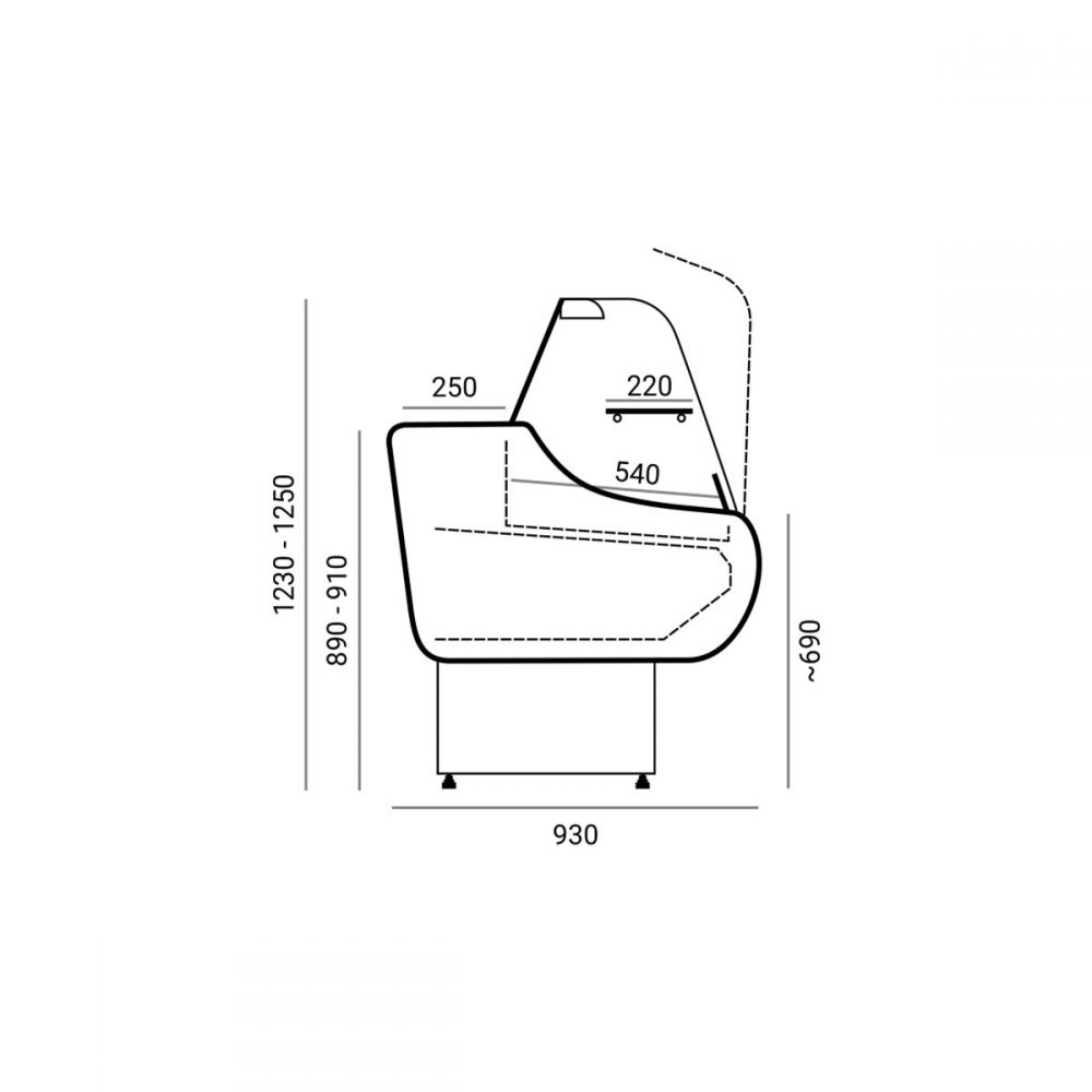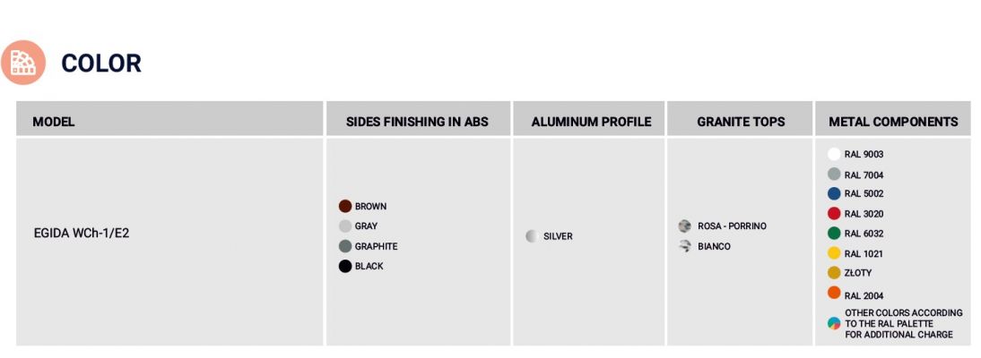 - Granite or stainless steel working top- Glass shelf in the exhibition area