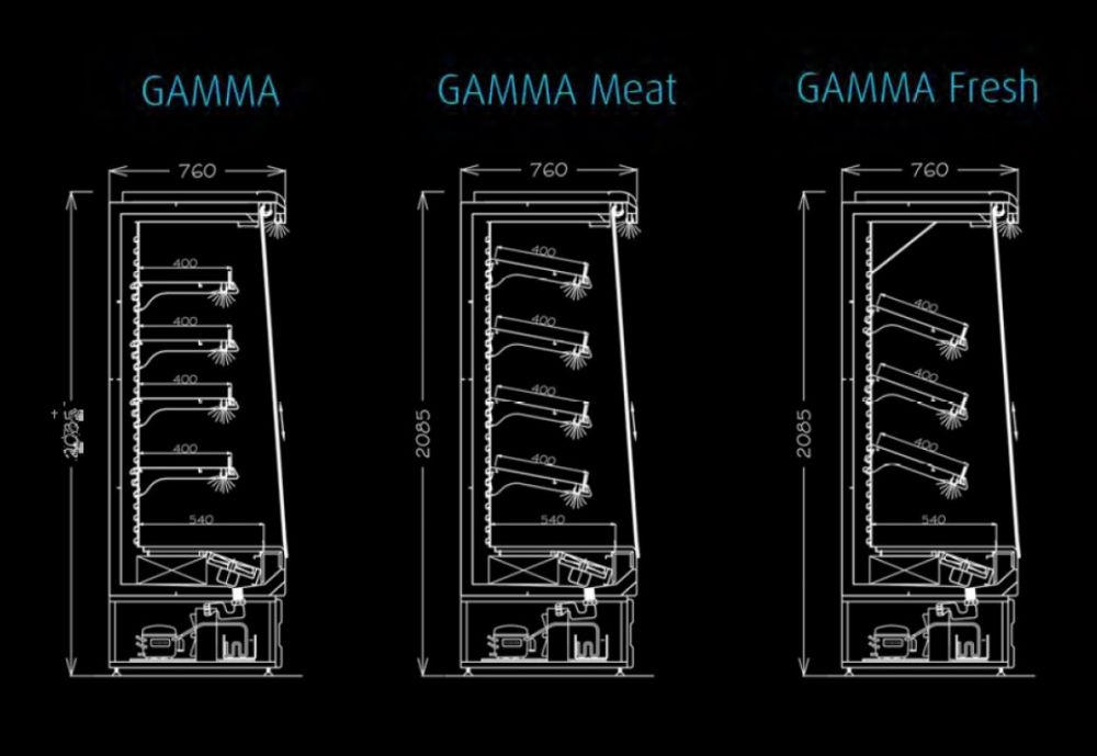 Vertical, plug-in, positive temperature display units for the display and sale of dairy products, cold meats,meat,with a guarantee of significant energy savings.