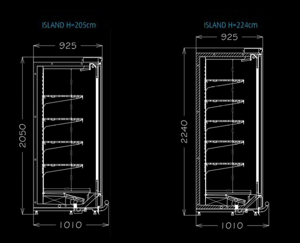 - Basic structure of the cabinet and standard evaporator- Heated full glass doors and frames with T8 led light