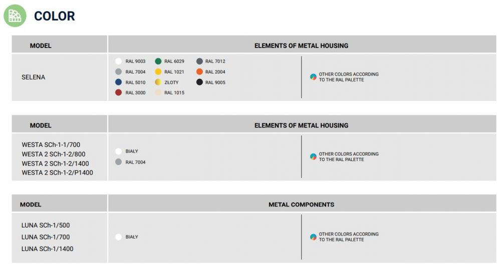 - Inside overlayed stainless steel- Any colour of casing from RAL palette