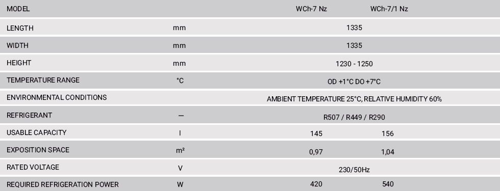 - Cooling system: static (WCh-7)/ dynamic (WCh-7/1)- Integral condensing unit (plug in)