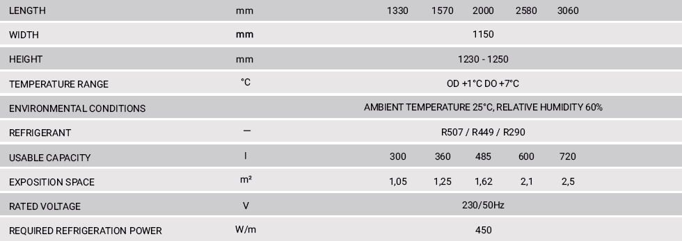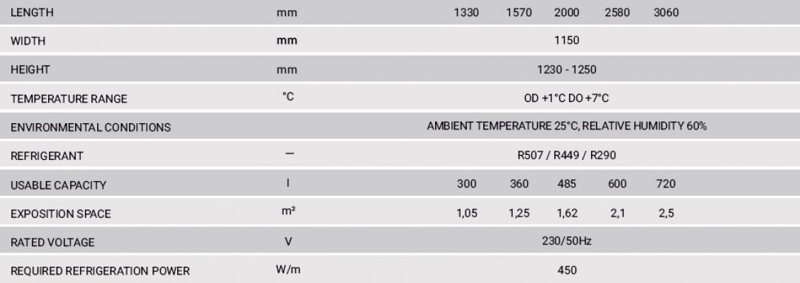- Cooling system: dynamic- Integral condensing unit (plug in)