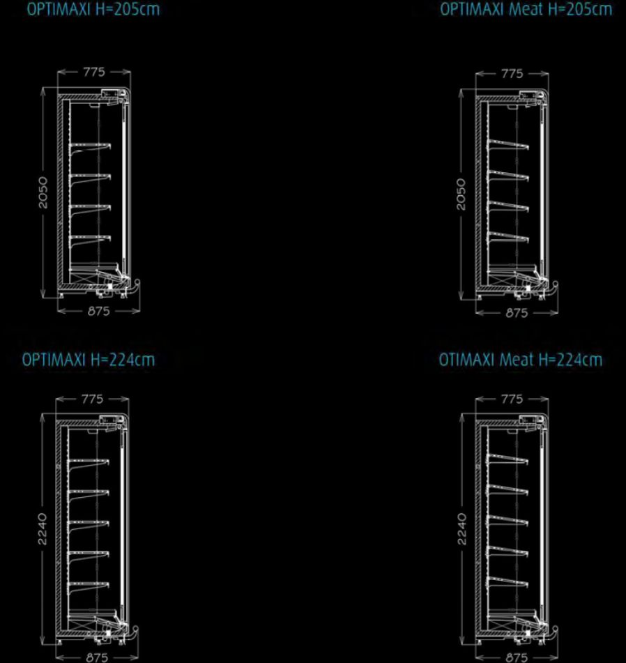 - Basic structure of the cabinet and standard evaporator- Shelves with price holders and supports
