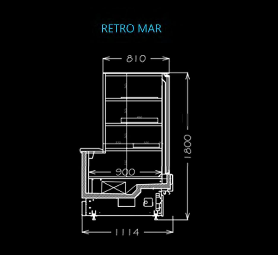 - Side panel with glass- T8 led ligth under the shelves L= 1250mm
