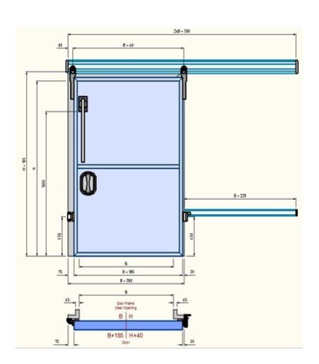 - Aluminum door wing frame (70, 90, 120 mm),- PUR insulated,(45 kg/m),