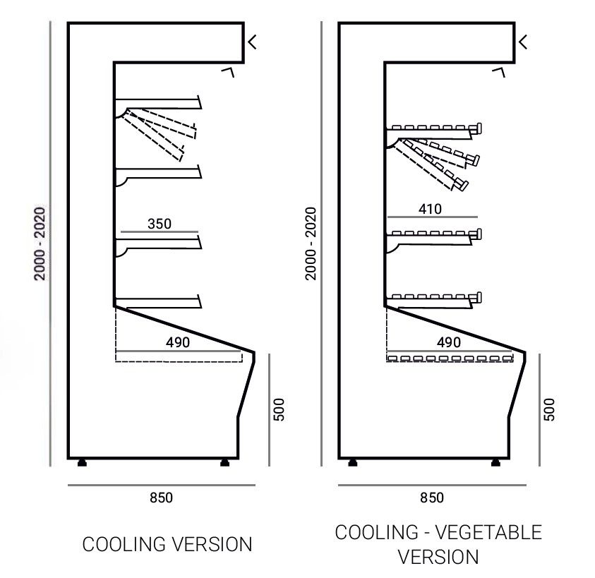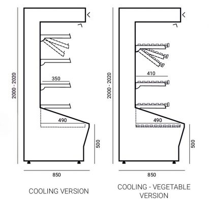- Addapted to coombining one line- Cooling-vegetable with mirror and wooden shelves