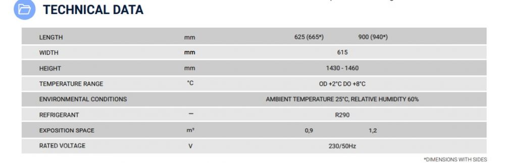- Cooling system: dynamic- Integral condensign ubit plug in