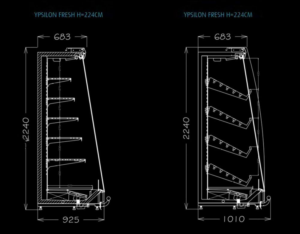 - Basic structure of the cabinet and standard evaporator- Shelves with price holders and supports